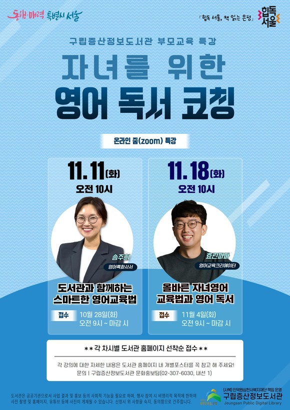 총 2회차로 구성된 이번 프로그램은 자녀의 영어 독서 습관 형성과 학습 동기 부여에 도움이 되는 실질적인 정보를 제공할 예정이다.
