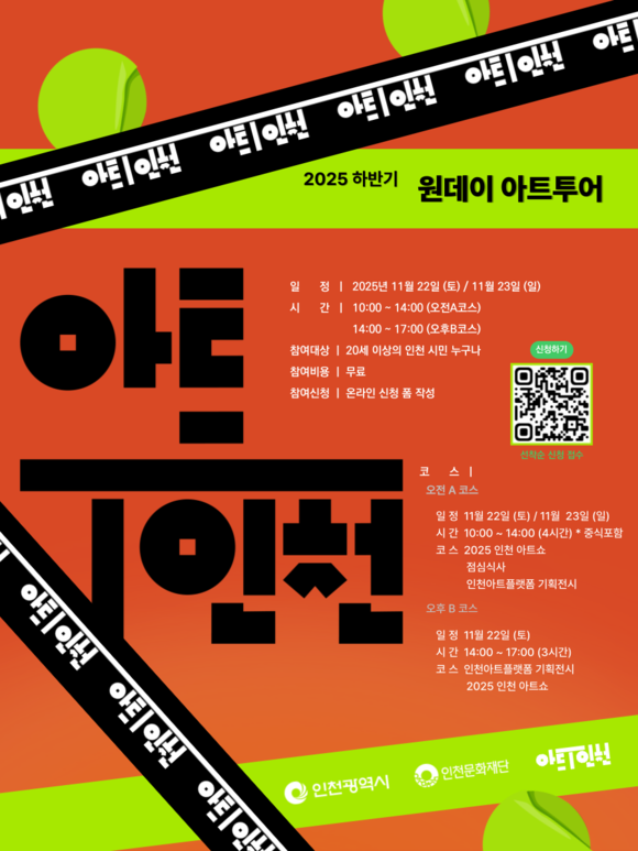 상반기에 이어 하반기에도 진행하는 「아트·T 인천」 원데이 아트투어는 인천아트플랫폼 기획전시와 인천에서 개최되는 아트페어 <2025 인천 아트쇼>로 구성되어 있다. 원데이 아트투어에 참여하는 인천 시민은 준비된 프로그램을 관람하며 동시대 미술의 다양한 흐름과 생생한 현장을 경험할 수 있다.
