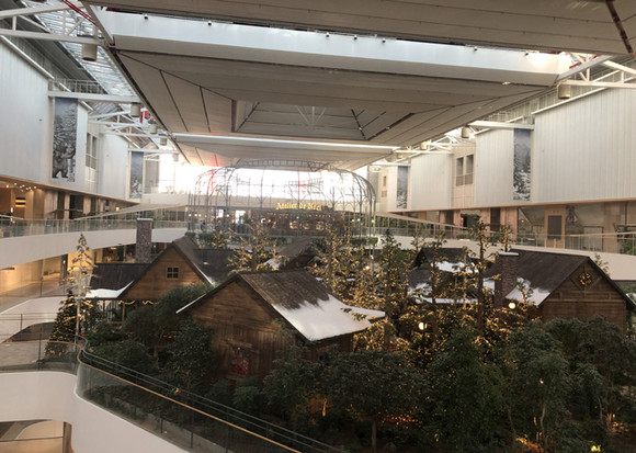 더현대 서울 5층 사운즈 포레스트는 흰 눈이 뒤덮인 크리스마스 공방으로 변신해 멀리서도 눈에 띄었다. 8m 높이의 나무 기둥을 중심으로 약 100여 그루의 겨울 숲이 조성돼 웅장함을 자랑한다. 이 공간은 ▲산타의 집 ▲편지공방 ▲선물공방 ▲포장공방 ▲루돌프의 집 등 연출 공간과 1개의 PB샵으로 구성됐다.