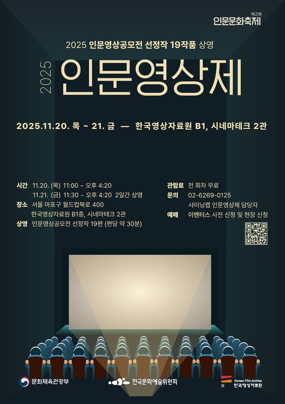 문화체육관광부(장관 최휘영)와 한국문화예술위원회(위원장 정병국, 이하 아르코(ARKO))는 오는 11월 20일(목)부터 11월 21일(금)까지 한국영상자료원 시네마테크에서 <2025년 인문영상제>를 개최한다.