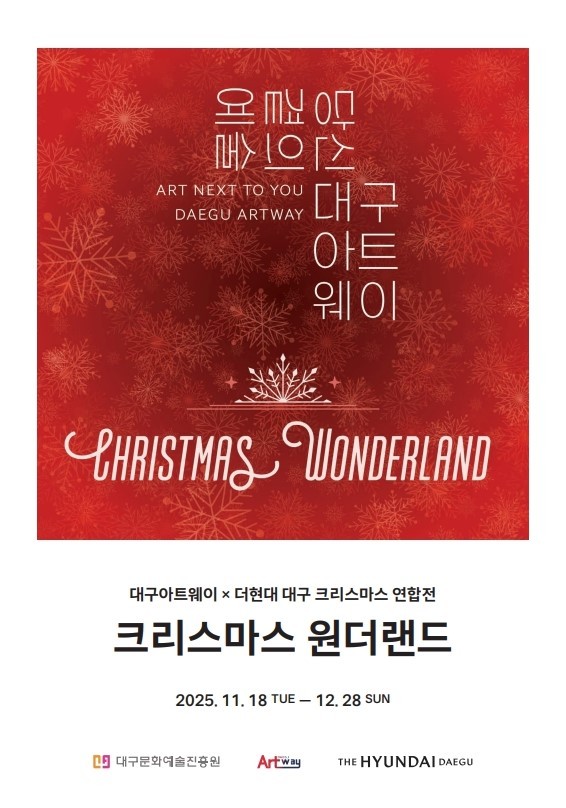 대구문화예술진흥원(이하 진흥원, 원장직무대행 이재성) 문화예술본부(본부장 방성택, 이하 ‘진흥원’)가 운영하는 대구아트웨이는 더현대 대구와의 협업으로 11월 18일(화)부터 12월 28일(일)까지 스튜디오 입주예술인 연합전 <크리스마스 원더랜드>를 더현대 대구 지하 1층 오픈갤러리에서 개최한다.