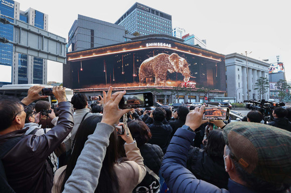 매일 오후 5시부터 자정까지 볼 수 있는 신세계의 크리스마스 미디어 아트는 거리를 오가는 시민을 비롯해 한국을 찾는 외국인 관광객 모두가 ‘행복이 가득한 연말’을 보내길 소망하는 메시지를 담았다.