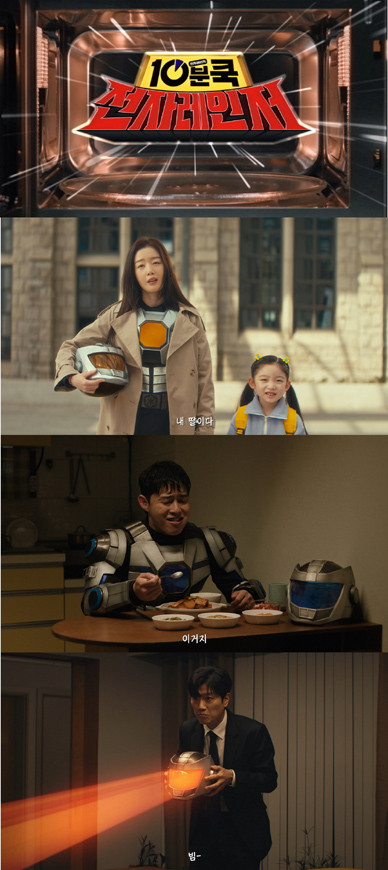 아이와 장을 보러가다 갑자기 괴인을 대적하게 된 ‘워킹맘’ 히어로는 심신이 고달프다. 사회 초년생인 ‘자취생’ 히어로는 밥을 제대로 먹기 전 선배의 호출에 매번 달려 나가야 한다. ‘기러기 아빠’ 히어로는 생일날 혼자 쓸쓸히 밥을 먹다가 자신과 비슷한 처지에 놓인 괴인과 서로 공감대를 쌓는다. 그리고 이 모든 에피소드의 중심엔 ‘밥심’이 있다. 괴인과 히어로 모두 치열한 일상 속 간편하게 차려먹으면서도 맛있는 행복을 느끼게 해주는 요리가 존재하는 것. 이것이 바로 CJ제일제당의 ‘전자레인저’ 세계관이다.