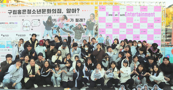 ‘2025 홍은DAY H.E.Y Entertainment with 포방터시장’ 참여 청소년들이 기념 촬영을 하고 있다. 사진=서대문구청