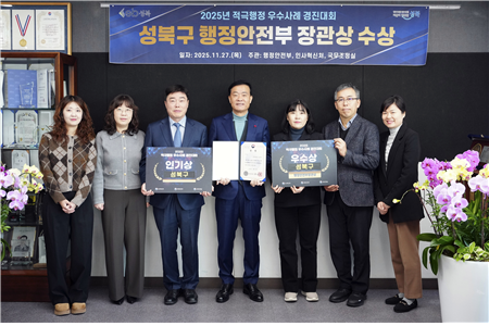 서울 성북구(구청장 이승로)가 ‘2025 적극행정 우수사례 경진대회’에서 행정안전부 장관상(우수상)을 수상했다.