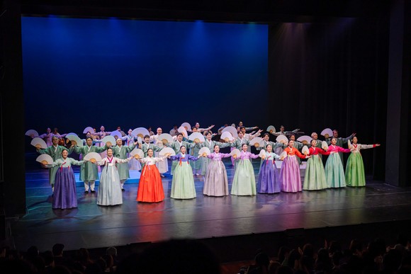 공연은 ‘사랑’의 테마로 문을 연다. 첫 장면에서는 <변강쇠 점 찍고 옹녀>의 ‘도방살이’가 펼쳐진다. 주인공 옹녀와 변강쇠가 도방살이를 시작하면서 부르는 노래로, 이소연과 최호성이 호흡을 맞춘다. 이어지는 <춘향>에서는 젊은 소리꾼 김수인과 김우정이 풋풋한 사랑을 그려내며 관객의 마음을 사로잡는다. ‘운명’에서는 <심청가> 중 심청이 인당수에 빠지기 직전에 부르는 ‘범피중류’를 선보이며 장중한 분위기로 감정을 끌어올리고, <트로이의 여인들>에서는 ‘헤큐바’ 역의 김금미를 포함한 8명의 코러스가 비극적 운명을 노래한다.