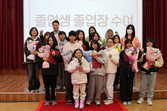 행사에서는 ▲2025 드림스타트 추억 영상 상영 ▲구청장 축사 ▲졸업생 아동 대표 소감 발표 ▲졸업장 수여식 ▲케이팝 댄스팀(라일라)의 축하공연 등이 진행됐다.