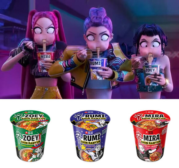 전 세계가 넷플릭스 ‘케이팝 데몬 헌터스’(이하 케데헌)에 열광할 때 또 주목받은 것이 있다. 바로 극 중 악귀로부터 세상을 지키기 위해 싸우는 ‘헌트릭스’ 멤버들이 맛있게 먹던 라면과 과자. 국내 대표 브랜드 제품을 연상케 하는 장면이 화제가 된 가운데 농심이 발 빠르게 움직였다. ‘신라면’, ‘새우깡’에 케데헌 캐릭터 디자인을 입혀 영화 속 제품을 현실화한 것.