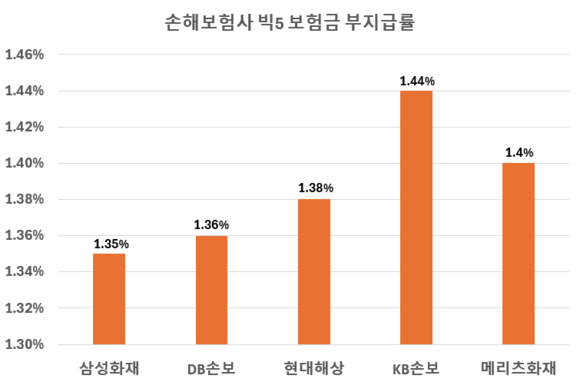 이 외에 현대해상과 메리츠화재의 부지급률은 각각 1.38%, 1.4%를 기록했으며, KB손해보험은 부지급률이 1.44%로 상위 5개 손해보험사 중 가장 높았다.