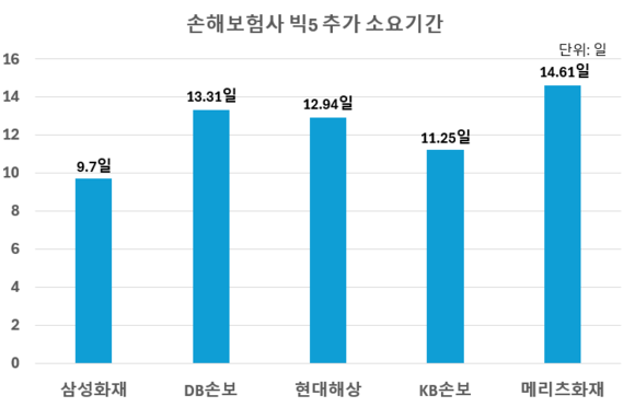 이는 지난해 상반기 기준 상위 10대 손해보험사로 범위를 넓혀도 삼성화재의 추가 소요기간이 두 번째로 짧은 수치에 해당한다.