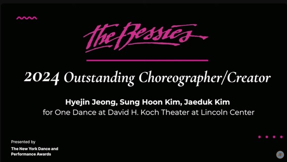 베시 어워드는 뉴욕 무용·퍼포먼스계 최고 권위의 시상식으로, 매년 뉴욕에서 공연된 작품 가운데 가장 혁신적인 성취를 이룬 예술가와 작품을 선정한다. <일무>는 이번 시상에서 흑인 정체성을 탐구해온 니아 러브(Nia Love), 바체바 무용단 출신으로 에너제틱한 무대가 돋보이는 샤멜 피츠(Shamel Pitts), 아프리카 전통 무용을 바탕으로 이주와 문화적 경계를 다루는 완지루 카무유(Wanjiru Kamuyu)와 함께 12개 후보 중 네 팀의 수상자로 선정되며 수상의 영예를 안았다.