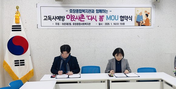 협약에 따라 추진되는 고독사 예방 관리 사업 ‘이웃사촌 다시, 봄’은 ▲외로움·고립 위험 점검표를 활용한 고독사 위험군 발굴 ▲정기 모임 운영을 통한 사회적 관계망 형성 ▲치매 예방 교육, 혈당·혈압 측정 등 건강 상담과 고독사 예방 서비스 제공 등으로 운영된다.