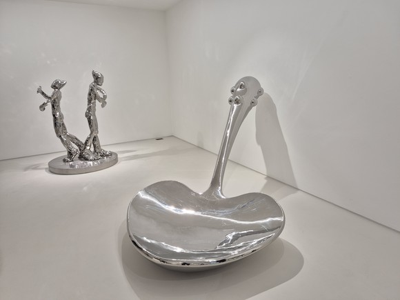 스테인레스 스틸로 만든 ‘사랑은 그리움을 남기고 떠나갔다’는 처음에는 두 사람을 한 덩어리로 만들었다가 다시 떼어놨다는데, 한 사람의 허리 부분이 움푹 들어가 있다. 작가는 “둘이 안았던 흔적이 이렇게 상처로 남은 거죠. 그리움이라는 것은 저에게는 상처인 거 같아서, 이런 상처로 표현했습니다. 상처는 결국 그림자입니다”라고 독백하듯 말했다.