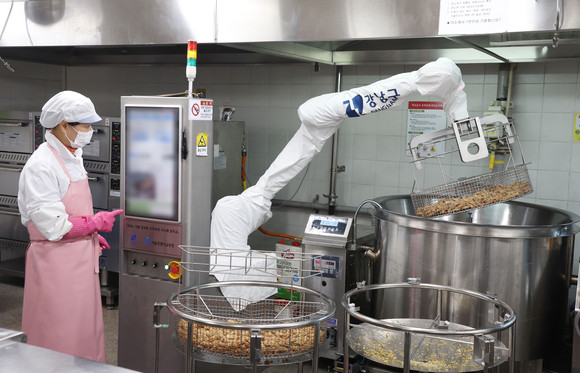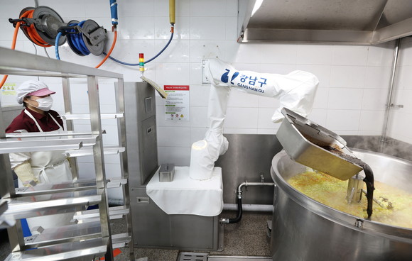서울 강남구가 지난해 9∼12월 4개월간 급식 조리 로봇 실증사업을 진행한 결과, 근무자의 조리흄(조리 중 발생 연기·미세먼지) 노출이 28.6% 줄고 근골격계 부담이 ‘2단계→0단계’로 낮아지는 등 조리종사자의 작업환경 개선 효과가 확인됐다.