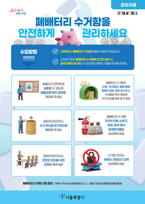 리튬배터리는 일반 쓰레기와 함께 배출되어 수거·운반 과정에서 충격을 받으면 발화 위험이 있어, 정확한 분리배출과 전용 수거 체계 마련이 중요하다.