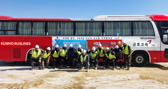금호건설은 금호고속·금호익스프레스와 함께 겨울철 한파에 취약한 현장 근로자들이 좀 더 따뜻하고 쾌적한 환경에서 휴식을 취하도록 이동형 버스 휴게실을 설치한다고 28일 밝혔다.