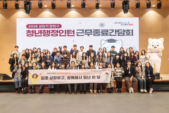 서울 양천구(구청장 이기재)는 30일 양천디지털미디어센터에서 ‘2026년 상반기 청년 행정인턴 근무종료 간담회’를 열고 청년들과 함께 행정 현장 경험을 공유하며 정책 참여의 의미를 되새겼다.