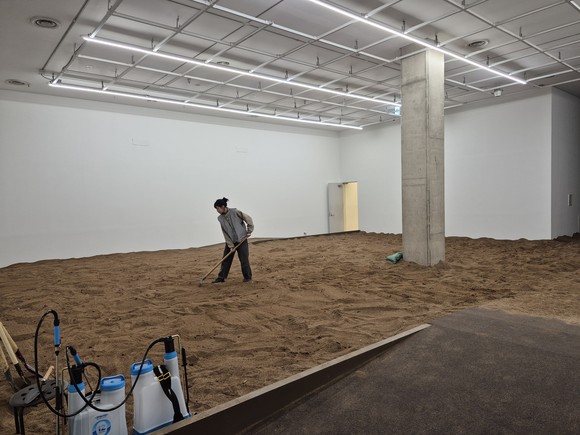 ‘막간’에서는 전환을 준비한다. 서울관 건물 중정(中庭)인 전시마당에는 인간과 자연의 경계를 넘나드는 ‘마당’이라는 장소에 호응하는 두 작품, 풀을 뭉쳐 만든 고사리의 〈초사람〉(2021(2026년 재제작))과 흙을 다져 만든 김주리의〈물 산〉(2025(2026년 재제작))이 펼쳐진다. 겨울에서 봄으로 계절을 나며 작품은 서서히 형태를 잃어가고, 작품이 허물어진 자리에는 새싹이 움트며 작품은 소멸에서 생성으로 관객을 이끌어간다.