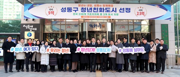 성동구는 ▲ 청년 취창업·주거·복지·참여·문화 전반을 아우르는 종합 청년정책 추진 ▲ 청년정책 핵심 4대 거점 기반의 통합플랫폼 구축 ▲ 청년 참여 기반 정책 설계 ▲ 타 도시와 협력하는 확산 거점 역할 등에서 우수한 성과를 거두며 청년친화도시로 선정됐다.