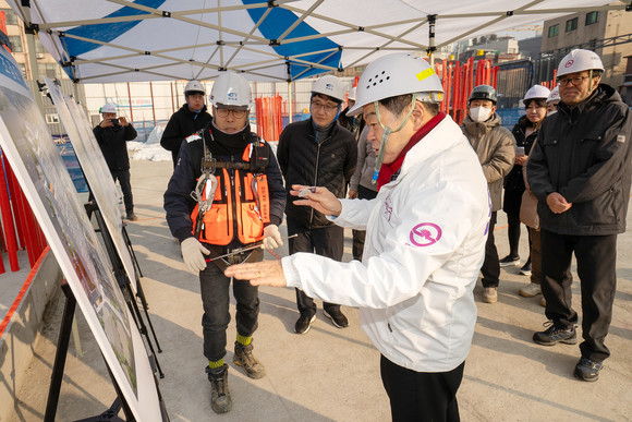 대청소가 끝나자 발걸음은 공사장으로 옮겨졌다. 들뜬 명절 분위기만큼 현장 긴장이 풀리기 쉬운 때라서다. 구(舊) 청량리정신병원 부지에 들어서는 시립동대문노인종합복지관 건설 현장에서 이 구청장은 공정 진행과 안전관리 실태를 확인했다. 토질·기초 기술사와 건축사 등 외부 전문가도 동행했다. 굴착공사장을 집중 점검하며 가설 구조물 안전성, 화재 예방 관리, 동절기 작업 환경, 안전 장비 착용 여부를 하나하나 살폈다. 구는 “명절 전후일수록 기본 수칙 점검이 중요하다”고 설명했다. 누군가에겐 복지관이 완공될 ‘미래’지만, 누군가에겐 오늘을 무사히 건너야 하는 ‘현재’이기도 하다.
