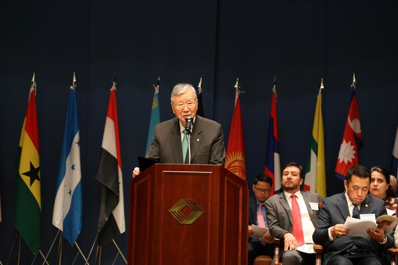 이중근 회장은 “대한민국은 애국지사들의 희생 덕분에 1943년 카이로 회담과 1945년 포츠담 선언으로 독립 서광이 비쳤고, 1947년 UN한국임시위원단 설립으로 1948년 5월 10일 총선거를 실시해 그해 8월 15일 정부를 수립했다”고 운을 뗐다.