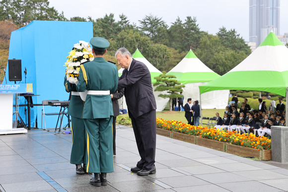 이중근 회장은 지난해 11월 11일 부산 유엔기념공원에서 열린 ‘제19회 유엔 참전용사 국제추모의 날’ 기념식에 국민대표로 참석해 헌화했다.