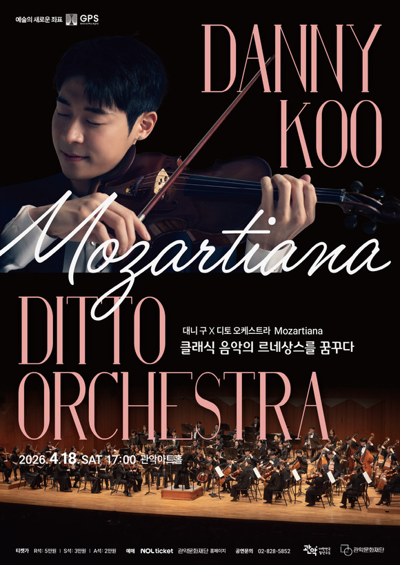 관악문화재단(대표이사 소홍삼)이 2026년 새롭게 선보이는 시즌제 브랜드 ‘관악 GPS(Gwanak Play Signal)’의 네 번째 공연으로 <대니 구 X 디토 오케스트라 – Mozartiana>를 오는 4월 18일(토) 관악아트홀에서 개최한다.