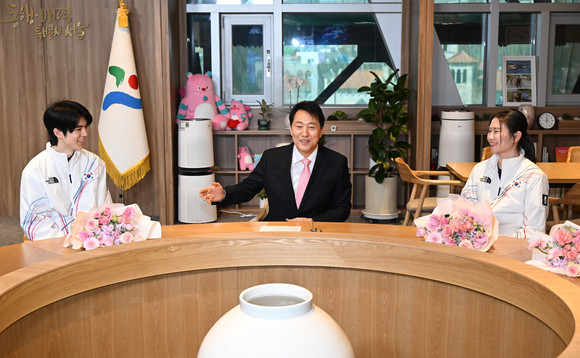 오세훈 서울시장은 19일(목) 오후 12시 서울시청 집무실에서 ‘2026 밀라노‧코르티나담페초 동계올림픽’에 참가해 값진 성과를 거두고 돌아온 서울대표 선수단과 간담회를 갖고 국민에게 큰 자부심과 감동을 안겨준 데 감사를 전하고 격려했다.