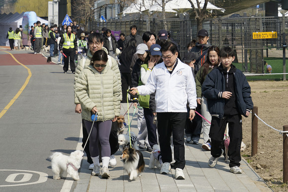 서울 동대문구(구청장 이필형)는 21일 화창한 봄날씨 속에 중랑천 장안교 하부 반려견놀이터 일대에서 ‘2026 동대문구 반려견가족걷기대회’를 열었다.