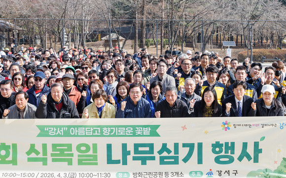 진교훈 서울 강서구청장이 23일(월) 방화근린공원에서 열린 ‘제81회 식목일 기념행사’에 참석해 주민들과 함께 나무를 심으며 숲의 소중함을 되새겼다.