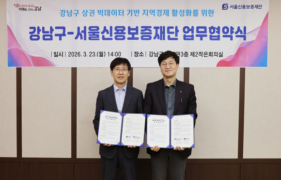 서울 강남구(구청장 조성명)가 3월 23일 구청에서 서울신용보증재단(이사장 최항도)과 업무협약을 체결하고, 지역상권 활성화와 소상공인 지원을 위한 빅데이터 기반 협력체계 구축에 나섰다. 상권 현황을 보다 정밀하게 분석해 지역 특성에 맞는 정책을 발굴하고, 소상공인이 체감할 수 있는 지원책으로 연결하겠다는 취지다.