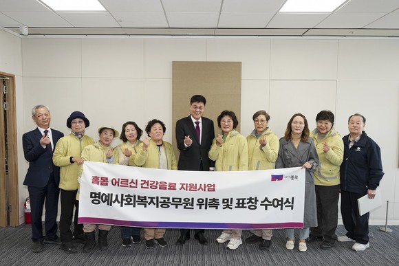 서울 종로구(구청장 정문헌)는 주기적으로 건강 음료를 배달하며 홀몸 어르신의 안부를 묻고 건강 관리를 지원해 온 배달 매니저 10명에게 3월 26일 구청장 표창을 수여했다.
