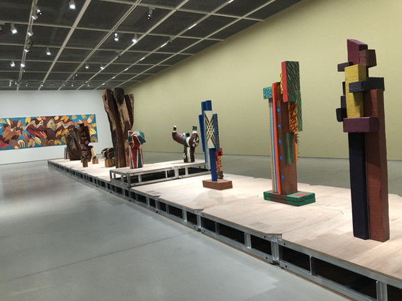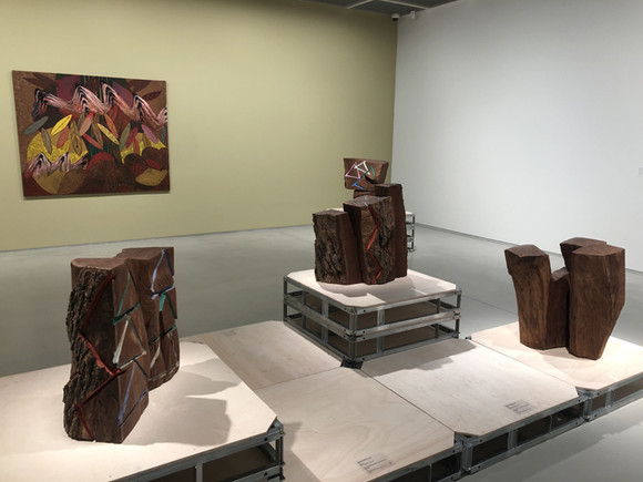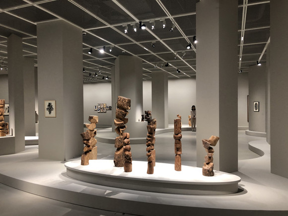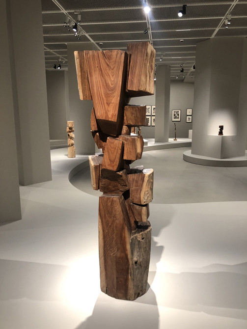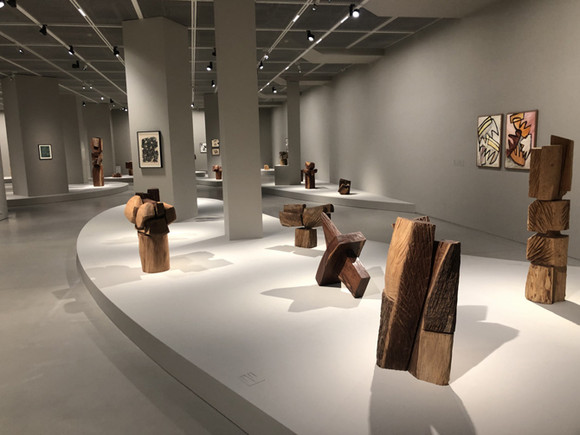 김윤신 작가는 1980년대 아르헨티나로 떠나 현지의 나무를 활용해 작품으로 재탄생시켰다. 사진=김금영 기자
