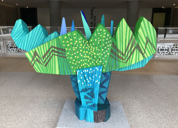 2층 전시장 외부에 설치된 최근작 '노래하는 나무 2013-16V1'(2025). 사진=김금영 기자