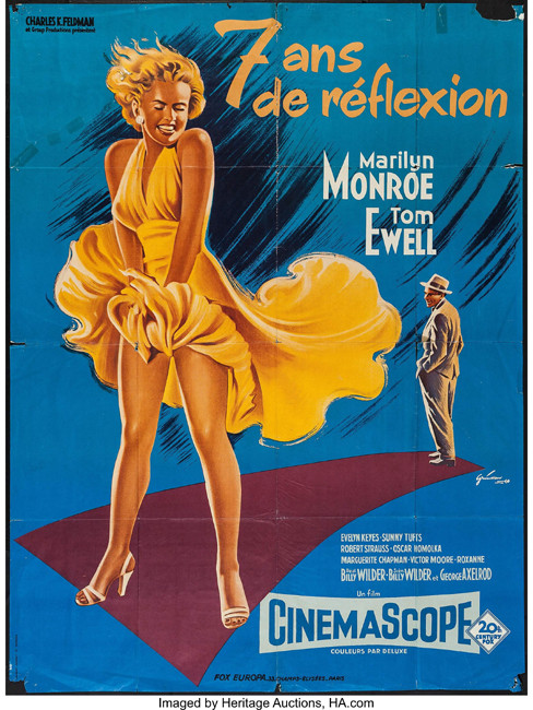 20세기를 대표하는 배우 마릴린 먼로는 1946년 ‘쇼핑 미스 필그림’에서 단역으로 데뷔해 36년 생애 동안 33편의 영화에 출연했으며, ‘이브의 모든 것’, ‘나이아가라’, ‘신사는 금발을 좋아해’ 등 대표작을 남겼다. 특히, 1955년 흥행작 ‘7년 만의 외출’에 출연하며 극 중 지하철 통풍구 위에서 바람에 날리는 드레스를 잡는 장면을 연출해 섹시심벌로 자리매김했다.