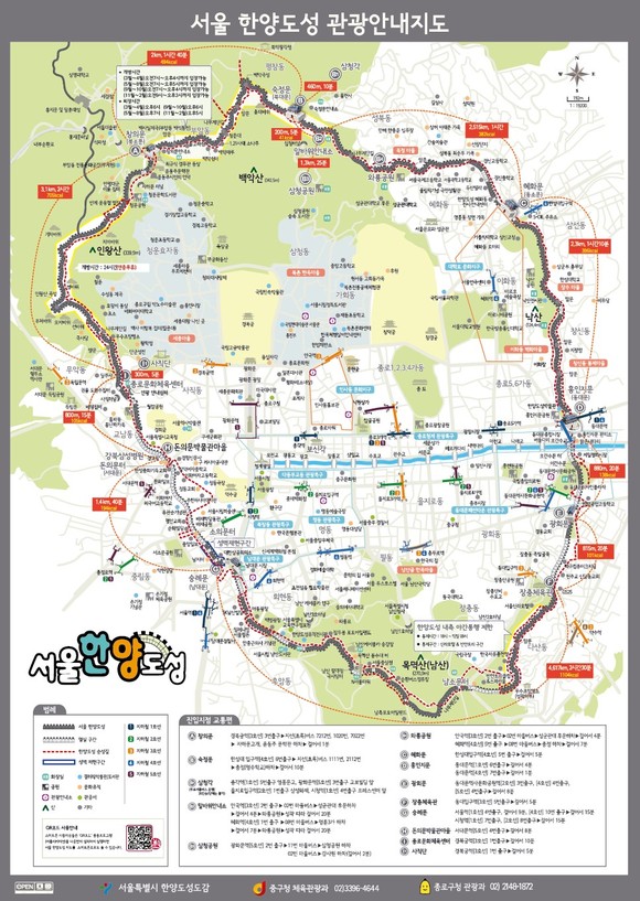 중구는 올해도 한양도성을 찾는 관광객이 크게 늘 것으로 보고 관광안내지도 국문판 2만7000부와 영문판 500부를 새로 제작했다. 탐방객 편의를 위해 주요 명소의 정보를 기재하고 가독성을 높였다. 서울 곳곳의 관광안내소, 숭례문 관리소, 한양도성 박물관 등에 비치돼있다.