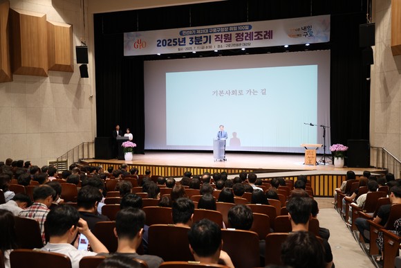 이날 오전 구로구민회관 대강당에서 열린 직원 정례조례에서는 새로운 민선8기 핵심 철학인 ‘기본사회’ 구상을 처음으로 공개하고 조직 내 공감대 형성을 위한 구정 방향을 제시했다.