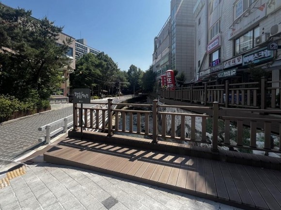 구는 이번 공사를 추진하며, 보행자 안전을 위해 옹벽 위 길을 보행 산책(데크)길로 새로 만들었다. 또 주변 화단을 깨끗하게 정비했다.