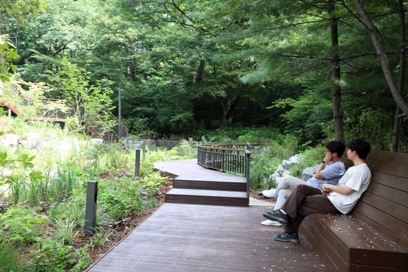 개운산 진입로를 따라가다 보면 등장하는‘개운산 폭염저감 정원쉼터’는 폭염을 피하고 정원을 바라보며 휴식할 수 있도록 정자 모양으로 조성해 운치까지 더했다. 쉼터 이용객들이 공원을 감상하며 자연스럽게 대화를 나누는 등 각박한 도시에서 정을 주고 받는 모습이 자주 목격된다.