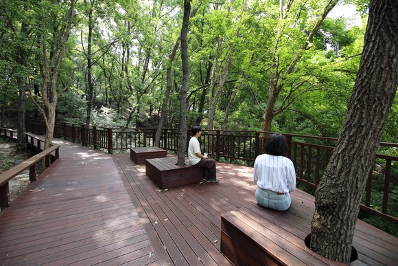 장애인, 노약자, 영유아 동반 가족 등 누구나 숲을 편리하고 안전하게 이용할 수 있도록 무장애숲길 2단계도 조성을 완료했다. 개방한 길은 울창한 숲이 만드는 그늘과 나무 향기 가득한 청량한 바람으로 벌써부터 입소문이 나 삼삼오오 유모차를 동반한 방문객의 발길이 이어지고 있다.