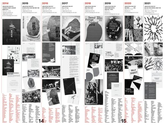 <서울프린지페스티벌>은 1998년 서울 대학로에서〈독립예술제〉로 시작해, 다양한 예술형식의 실험과 자유로운 창작을 지향하는 국내 대표 독립 예술 축제로 성장해왔다.