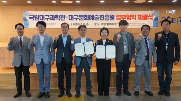 대구문화예술진흥원(원장 박순태)과 국립대구과학관(관장 이난희)은 8월 6일 (수) 국립대구과학관에서 지역사회 과학 문화 확산과 문화예술 진흥을 위한 업무협약(MOU)을 체결했다.