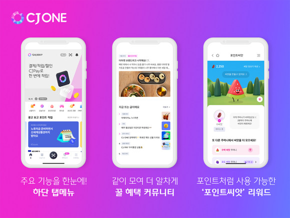 한편 CJ ONE은 앱 리뉴얼을 기념해 ‘커뮤니티 첫 만남’ 이벤트를 준비했다. 이달 21일부터 다음달 10일까지 3주간 열리며 포인트 씨앗을 일정 개수 이상 모은 회원 모두에게 포인트 또는 선물을 증정한다.