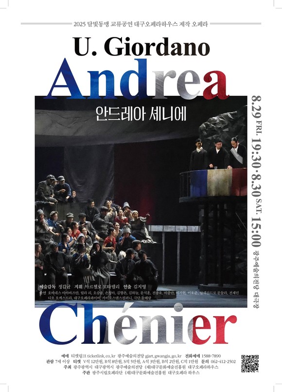 (재)대구문화예술진흥원 대구오페라하우스는 오는 8월 29일(금), 30일(토) 양일간 광주시립오페라단의 초청으로 자체 제작한 오페라 <안드레아 셰니에>를 광주예술의전당에서 공연한다.