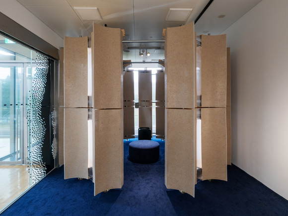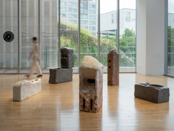 특히 청음 공간으로서 제안된 사운드 설치 작품 〈오디누아 12〉와 사운드 조각 〈청각의 지층〉, 총 2점이 이번 전시의 커미션 신작으로 제작되었다. 두 작품은 그간의 연구 결실이자 복합적인 청