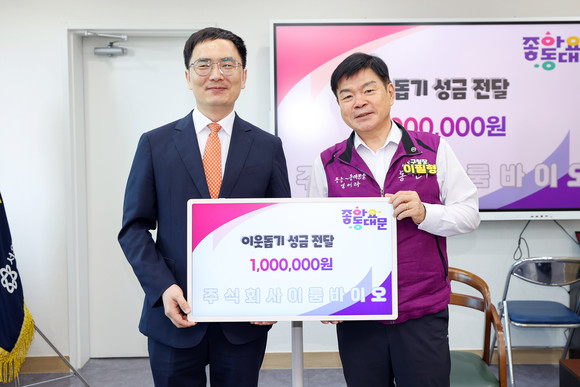 서울 동대문구(구청장 이필형)는 9월 3일 ㈜이룸바이오(대표 조진형)로부터 지역 내 어려운 이웃을 위한 성금 100만 원을 기탁받았다고 밝혔다.