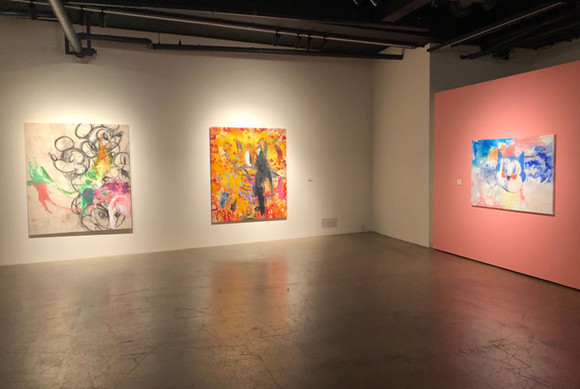 이번 전시는 2024년과 2025년 제작된 신작 63점을 선보이는 자리다. 특히 주목할 작품은 2025년 신작 ‘더 퍼스트 오브 매니(The First of many)’로, 디즈니의 대표 아이콘인 미키마우스를 겹겹이 그려낸 드로잉 위에 강렬한 붓 터치를 더함으로써 우리에게 익숙한 캐릭터를 낯설고 새로운 시각으로 재해석하는 작품이다. 반복되는 선과 중첩된 얼굴 윤곽은 캐릭터의 정체성을 흐릿하게 하고 거친 붓질과 원색의 물감이 화면에 긴장감과 에너지를 불어넣는다.
