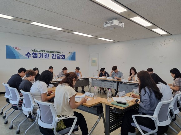 이번 간담회는 어르신들에게 행복한 일터를 제공하기 위해 논의하는 자리로 노인일자리 사업 수행기관 담당자들이 한자리에 모여 사업 활성화 방안과 노인 사회활동 기회 확대 등에 대해 심도 있게 논의하였다.