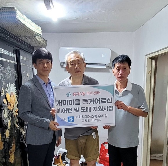 서울 서대문구 홍제3동(동장 이현석)은 사회적 협동조합인 ‘우리집 샬롬 인 리모델링’이 최근 관내 개미마을의 한 취약계층 홀몸노인 가구를 대상으로 에어컨 및 도배 지원사업을 추진해 주위에 귀감이 됐다고 4일 밝혔다.