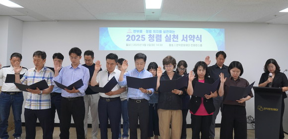 서울 관악문화재단(대표이사 소홍삼)이 지난 2일 임직원이 참석한 가운데 청렴의지를 다지기 위해 “2025년 청렴 실천 서약식”을 개최했다.